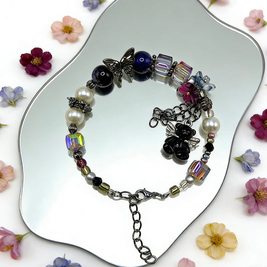 【Q789】エターナルネイビー 陶磁器*花*チャーム*チビビーズ*瑠璃