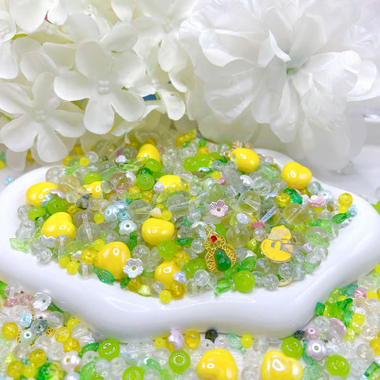 【Q790】レモンポップ 陶磁器*キャツアイ*花*葉っぱ*チャーム*瑠璃
