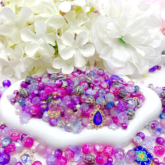 【Q791】ライラックブルーム 陶磁器*花*チャーム*チビビーズ*瑠璃