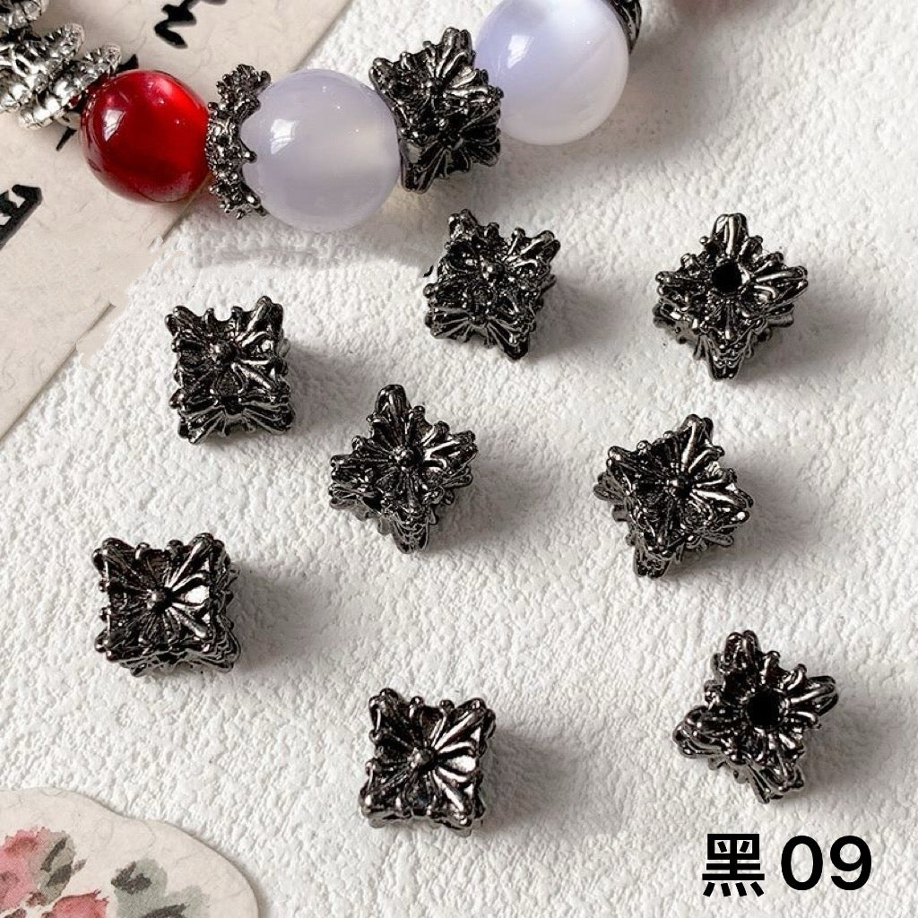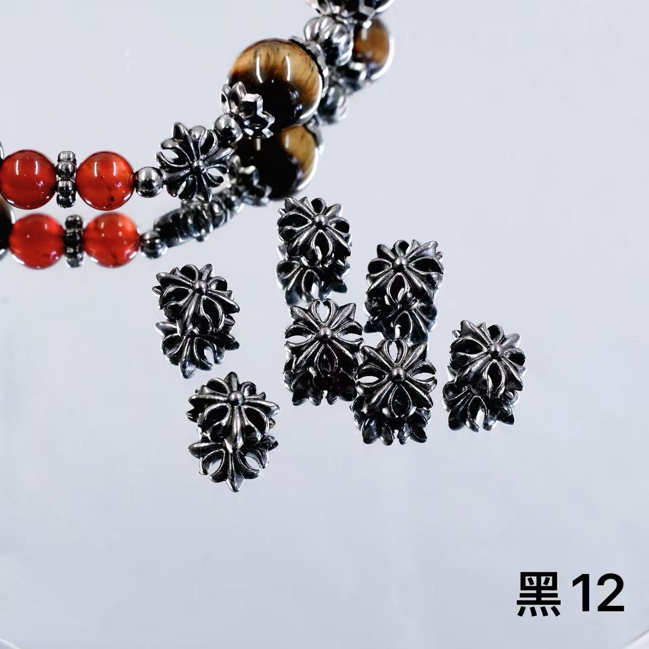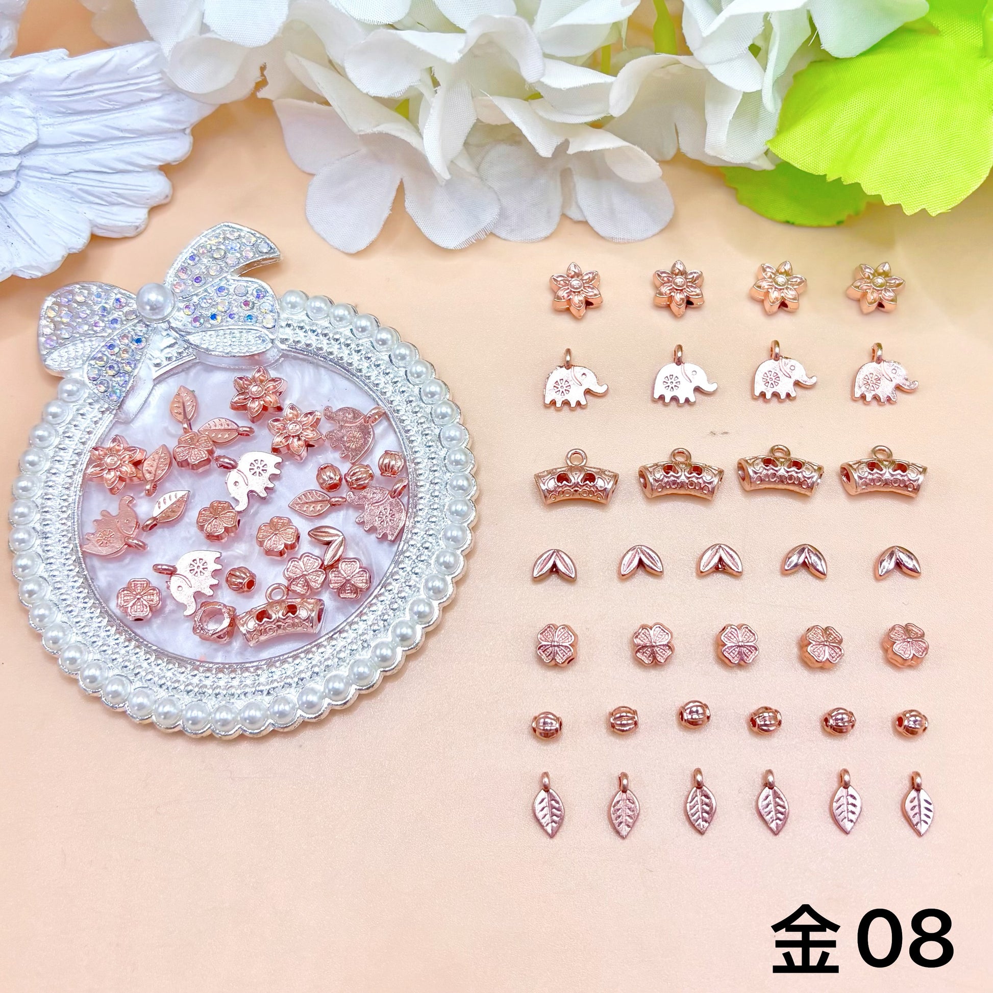 パーツ、チャーム系は全部金属製のため、酸化によって色落ちする可能性があるので、密封袋に入れて保存してください