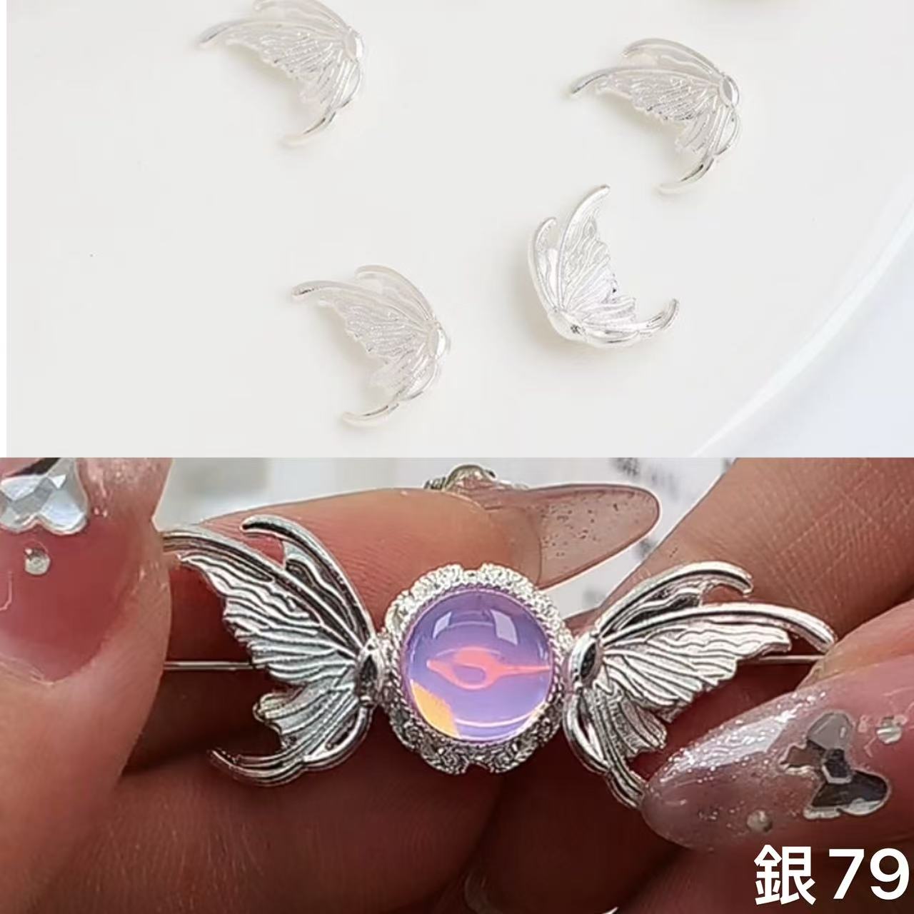 パーツ、チャーム系は全部金属製のため、酸化によって色落ち(金色の方が色落ちしやすい)する可能性があるので、密封袋に入れて保存してください