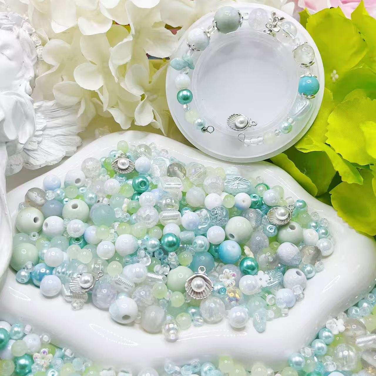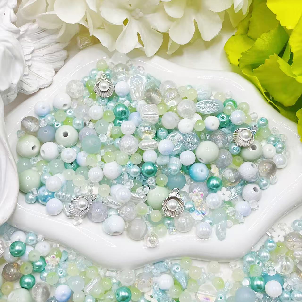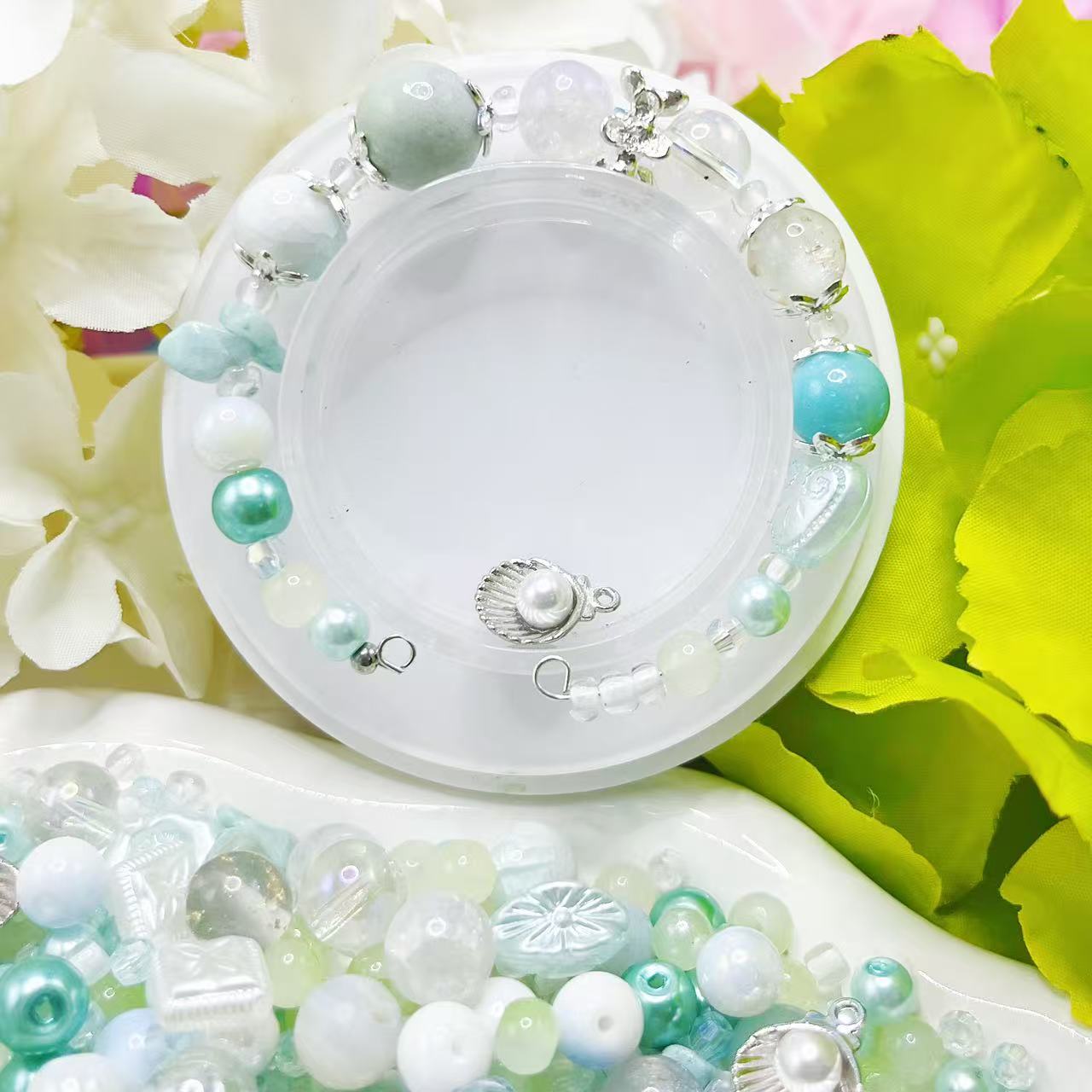【Q179】シャーベットメロン *樹脂*花*色チェーンビーズ*高級キラキラ*高級アクリル*瑠璃